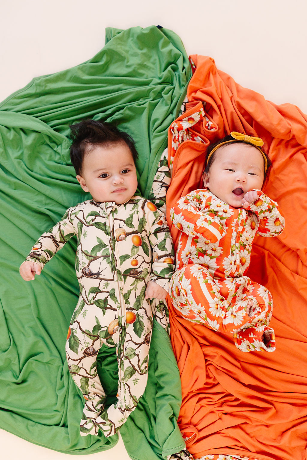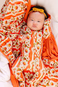 Daisy – Bold stripes, white daisies, and a print that captures everything we love about warm weather. Warm orange, oversized blooms, and enough personality to make it their most-reached-for piece all season long.