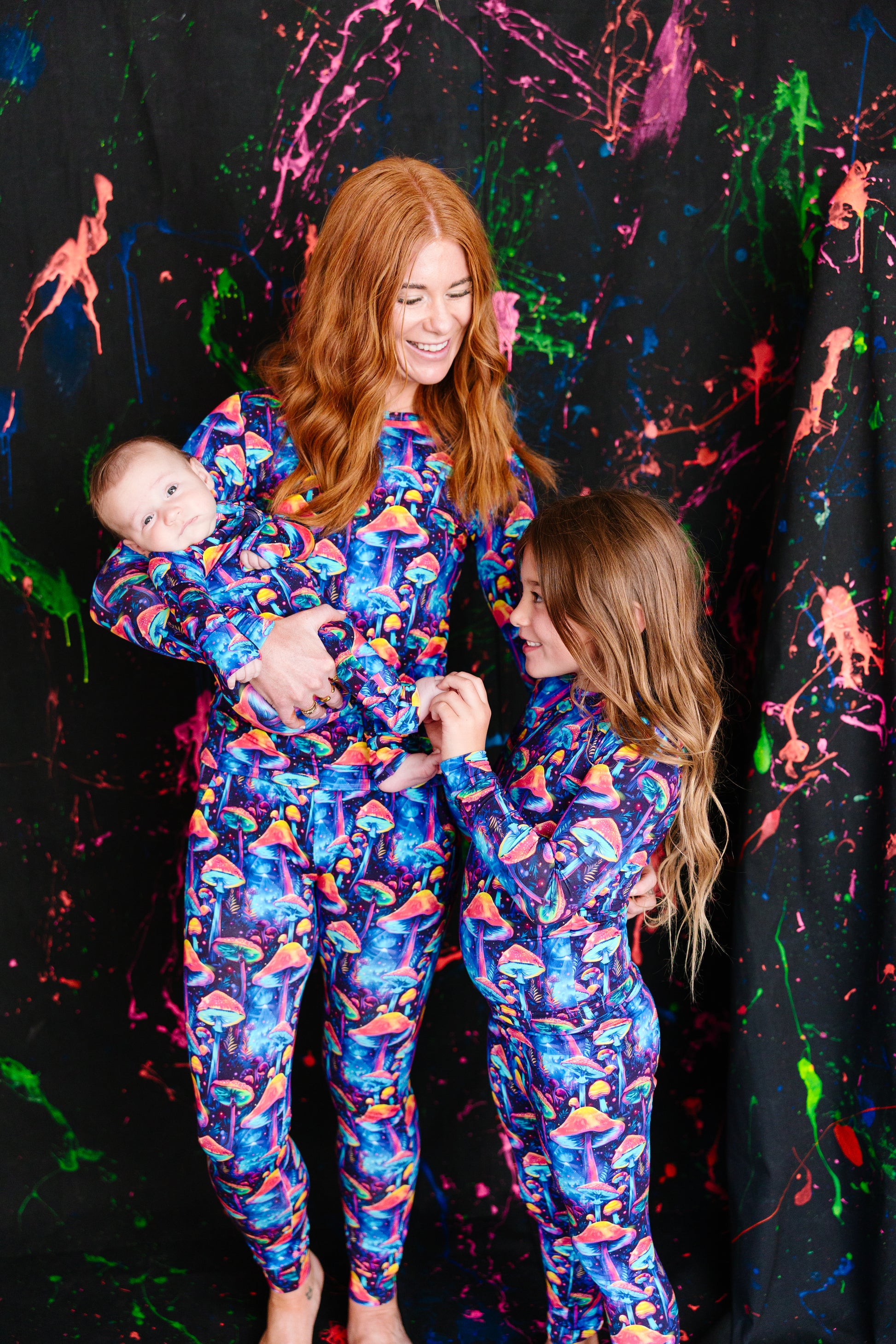 Fungi Funk is bursting with glow-in-the-dark energy (but, like, classier). Covered in wild, oversized mushrooms in neon oranges, electric blues, and cosmic purples, this print is made for kids who turn sticks into magic wands and backyard walks into enchanted quests.