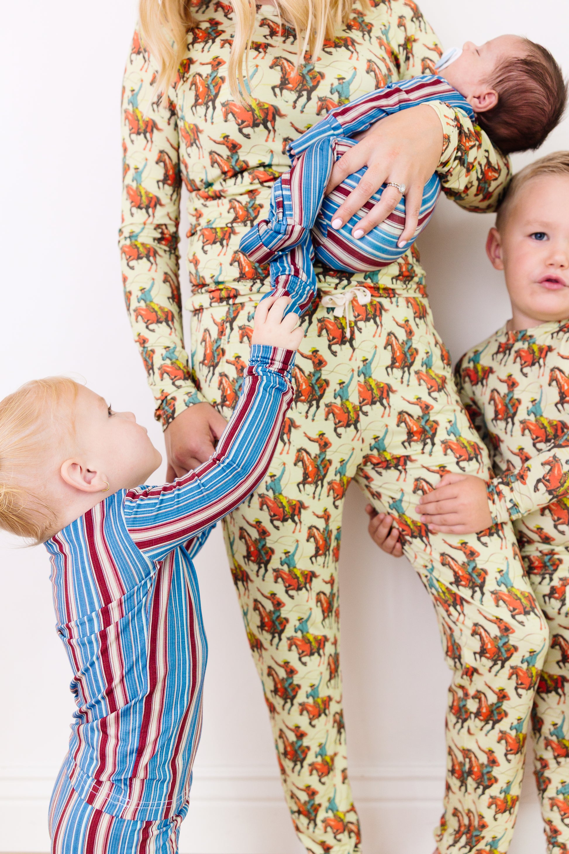 Functional details make parenting easier: a two-way zipper for quick diaper changes, fold-over cuffs for extended wear, and a flexible fit that never holds them back. The look? Classic western with a modern twist — bold, rugged, and unmistakably Bronze Moon.