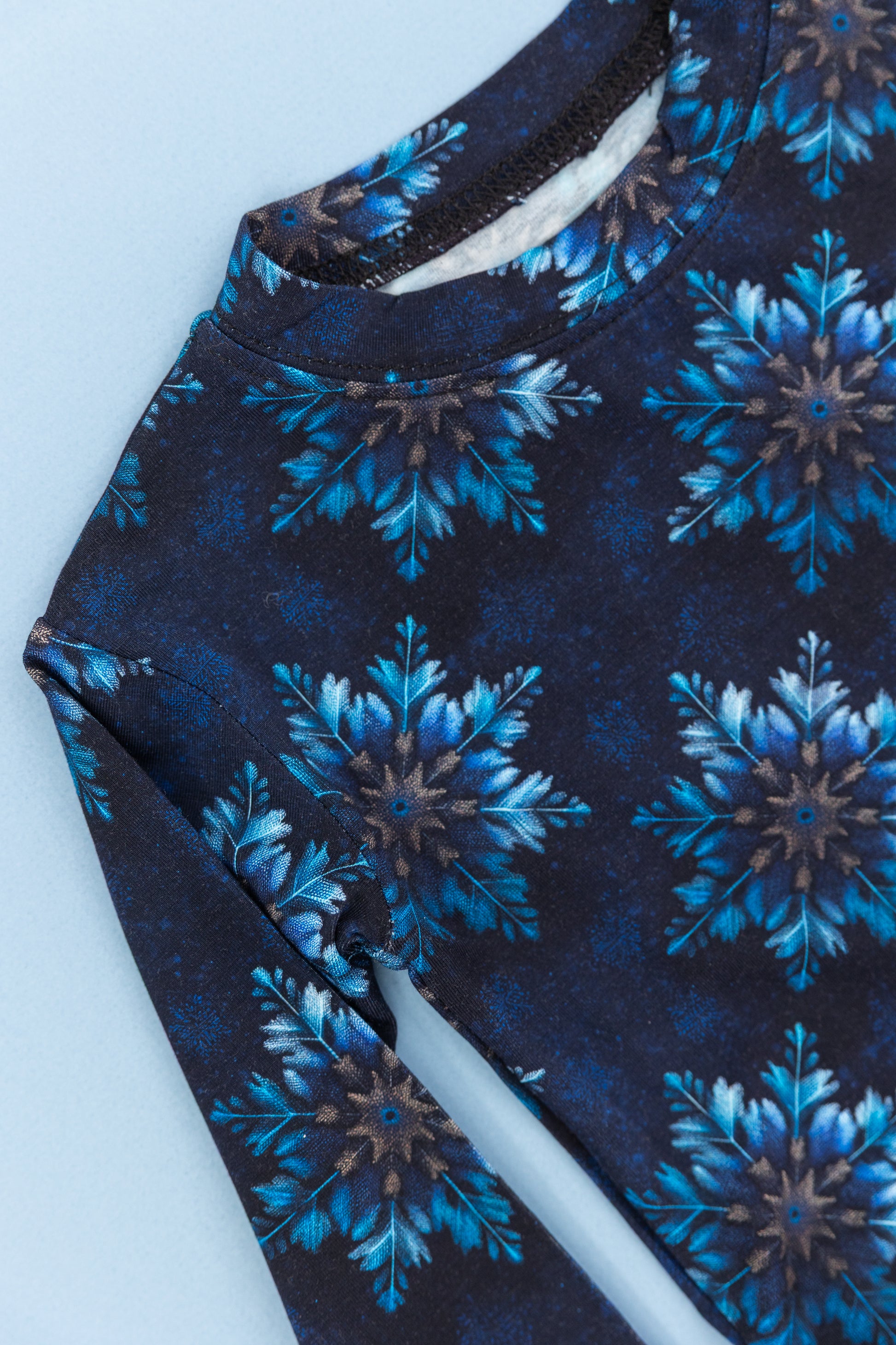 Wasatch Frost captures quiet winter mornings — soft sun, frosted windows, and crisp air before the day begins. A cool, calming snowflake pattern with a cozy feel, made to wear all season (not just for winter days).