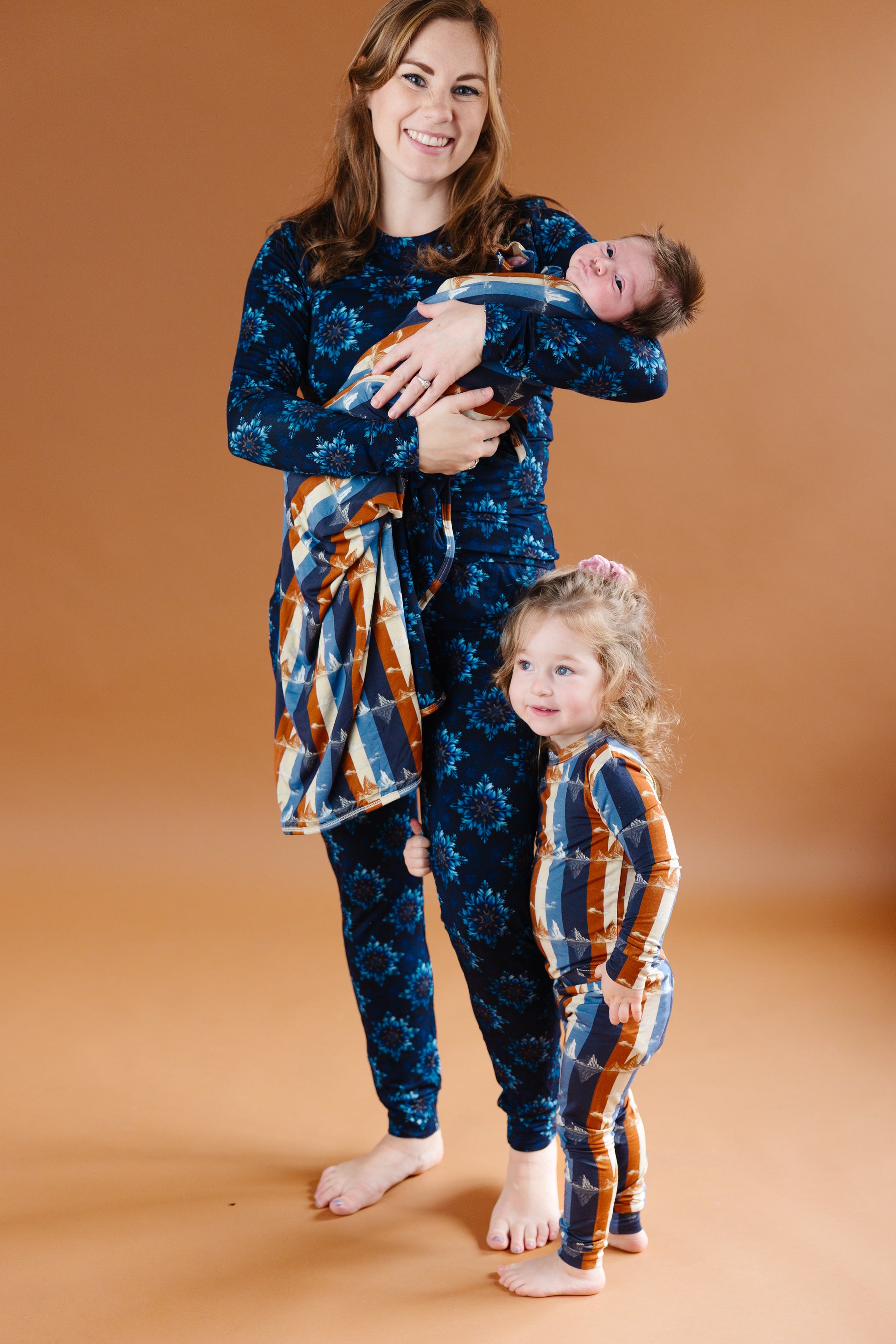 One blanket, two winter moods. Wasatch Frost brings the snowy, quiet stillness of frosted mornings, while Alta Stripe reflects the cozy warmth of lodge days, stacked wood, and soft sweaters. Soft, bold, and beautifully seasonal